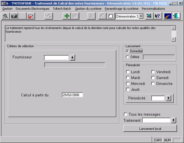 Le traitement de calcul des notes doit être soumis régulièrement. Il est préférable qu'il soit exécuté en fin de journée (voire la nuit) de façon à ne pas perturber les contrôles factures en cours.