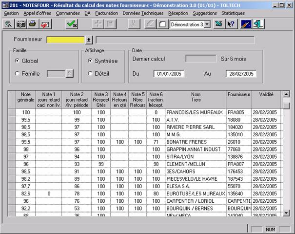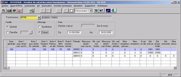 o La note finale est reportée sur la fiche du fournisseur. l’écran de consultation vous permet de comprendre le calcul