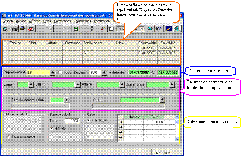 Les données de base : sur la fiche du client, vous avez spécifié un code représentant. Il sera automatiquement commissionné lors de la validation de la facture.
